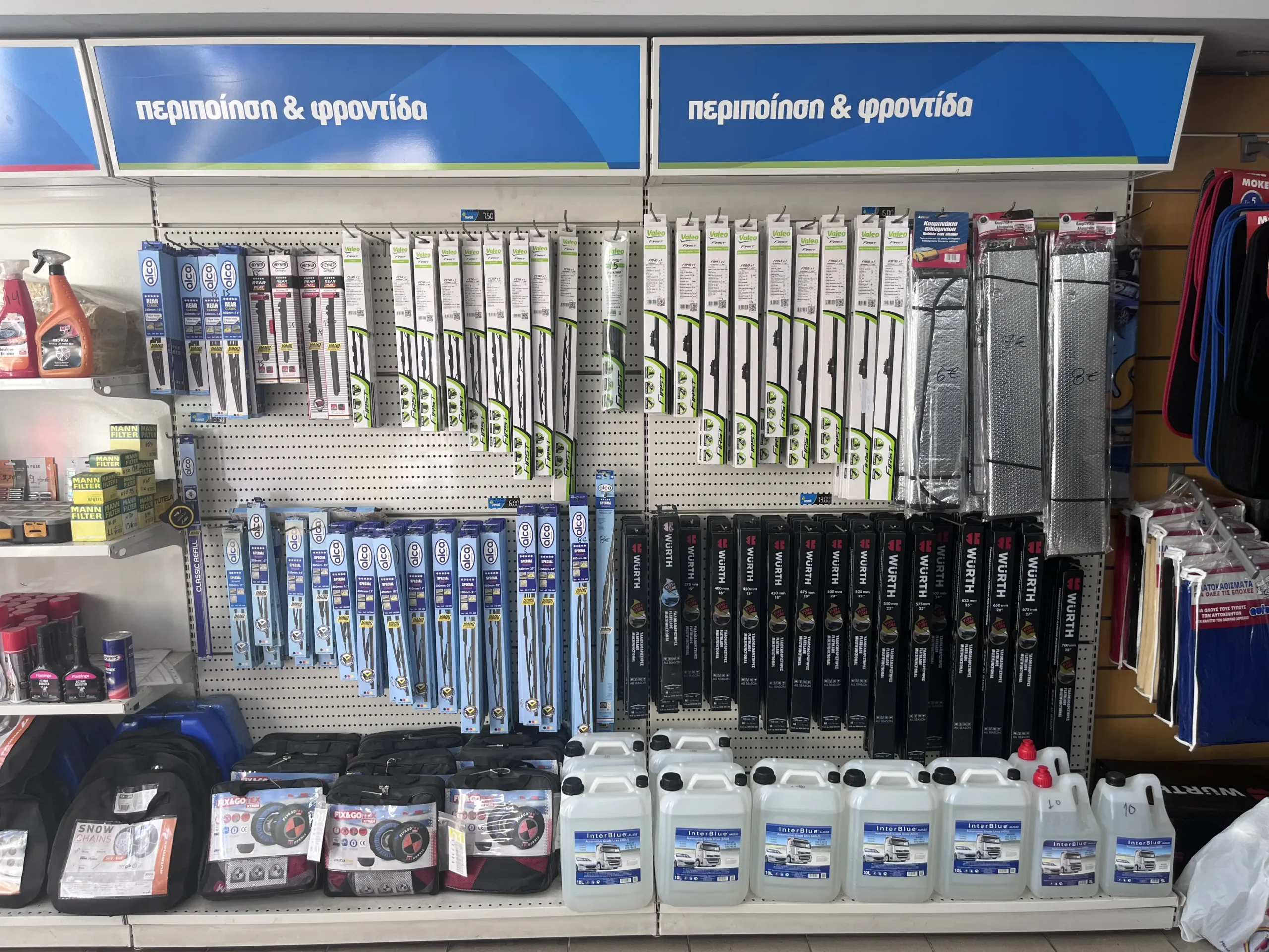 ✔ Καθαριστικά & Περιποίηση – Προϊόντα για τζάμια, ταμπλό, ελαστικά και εξωτερική φροντίδα.